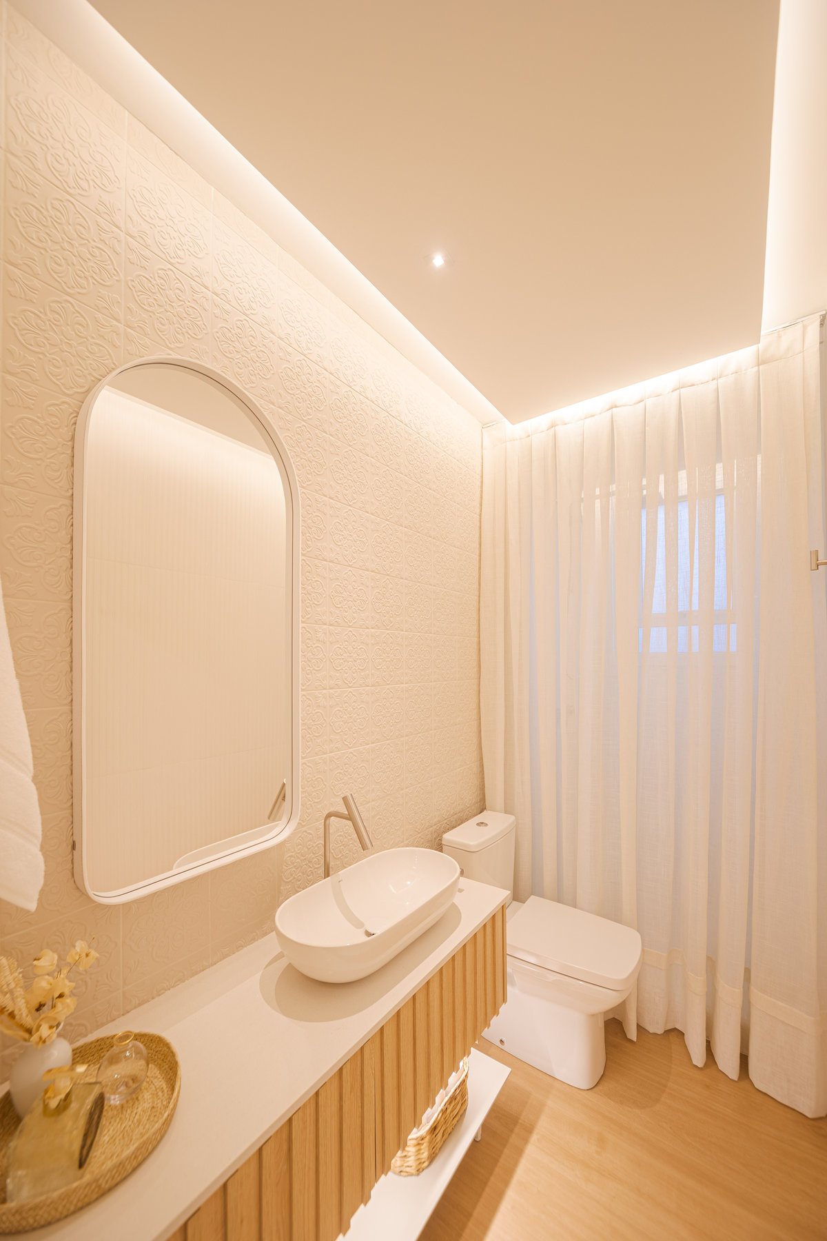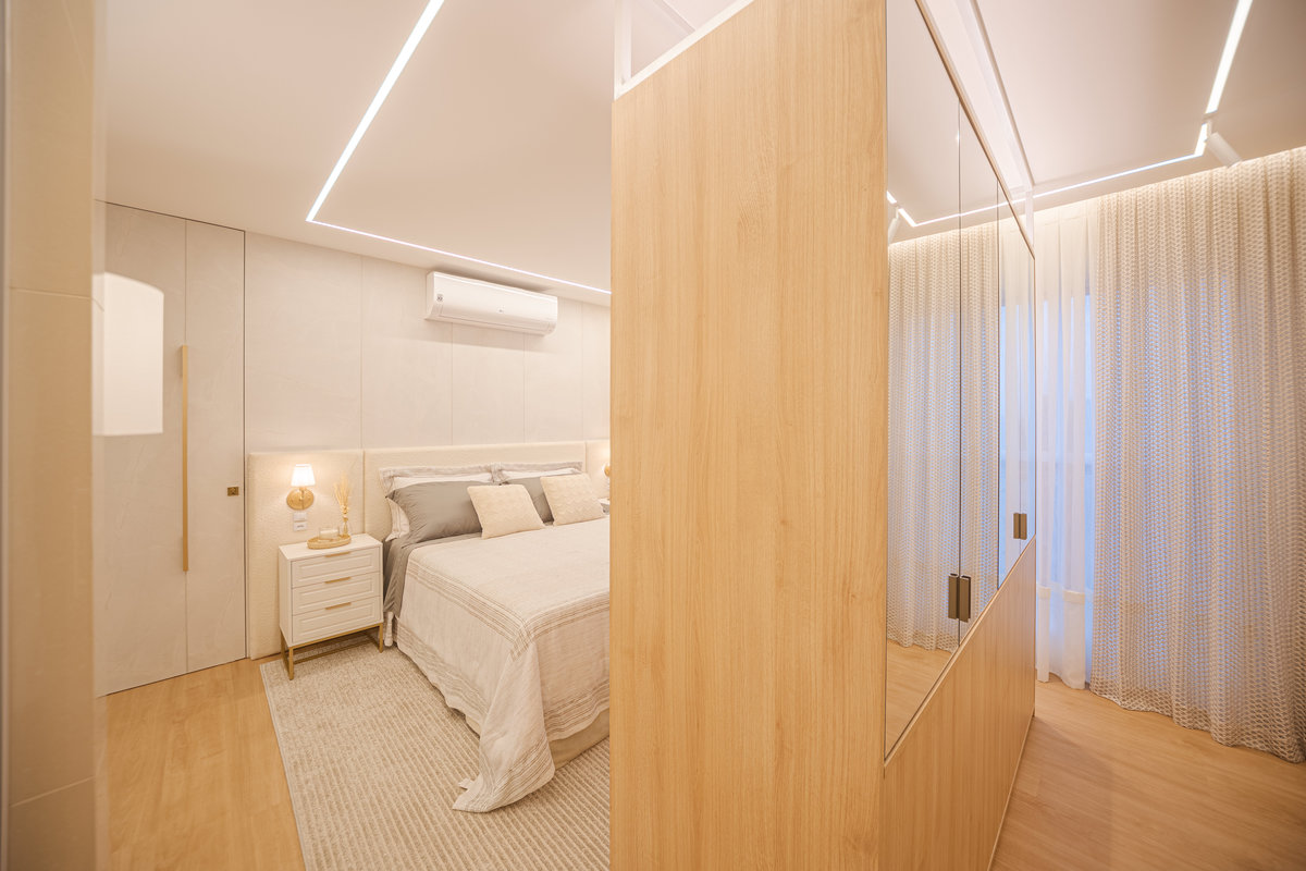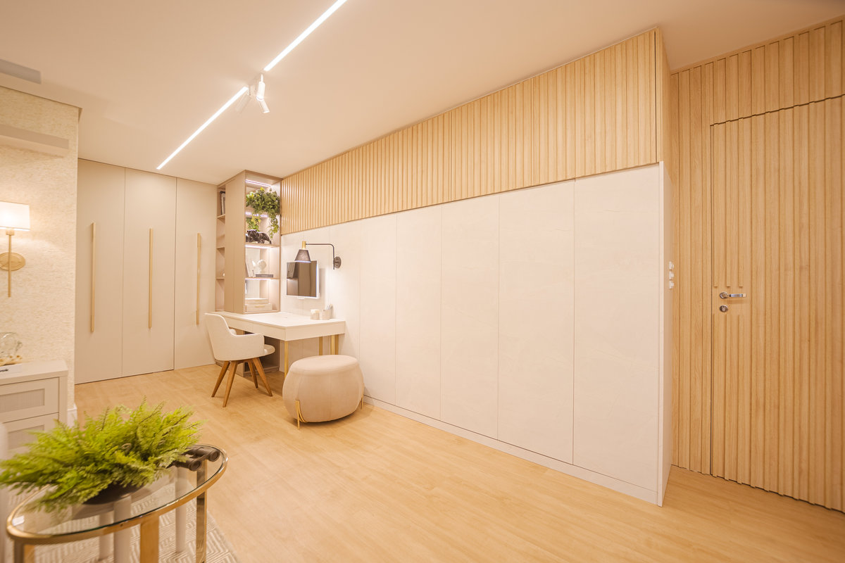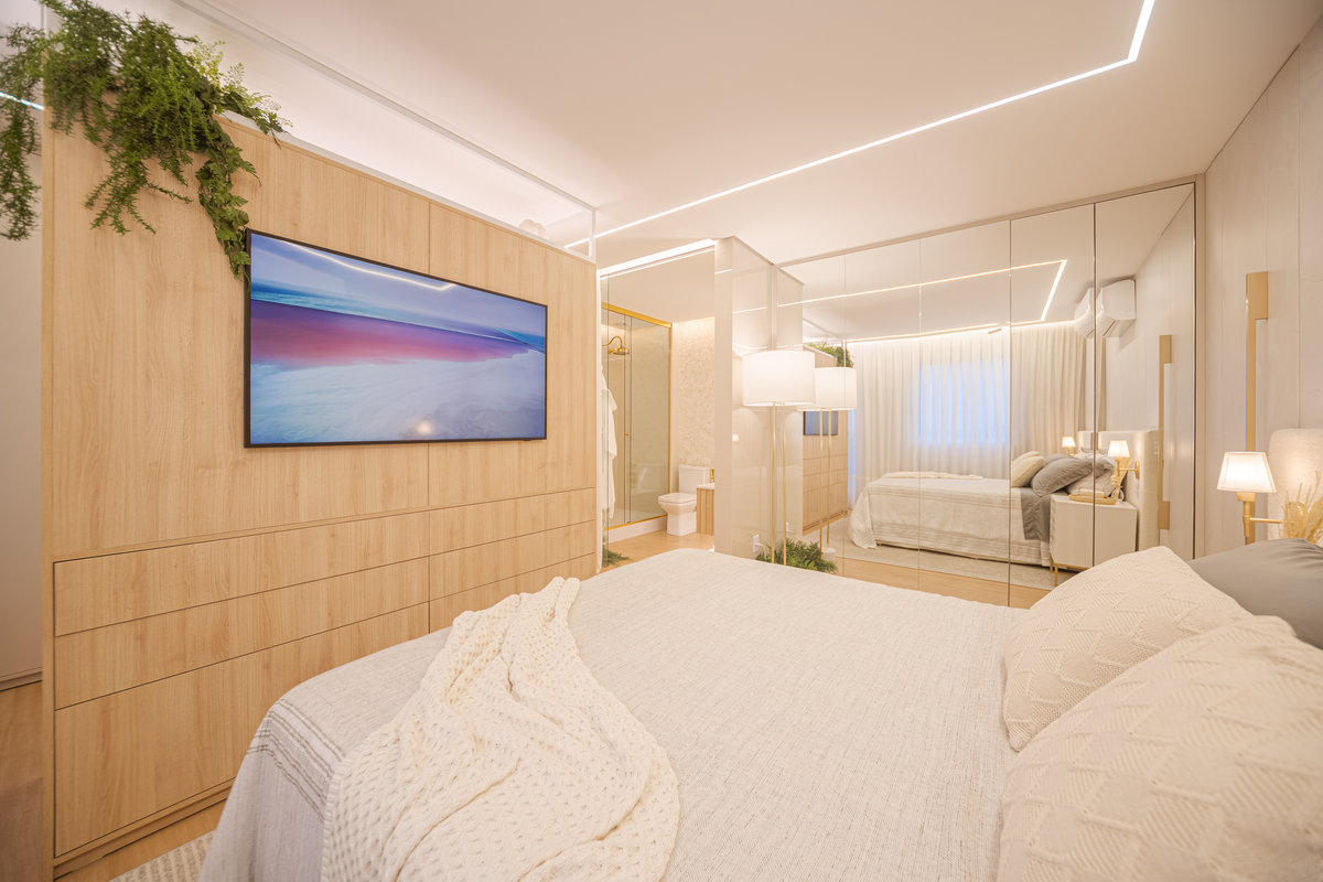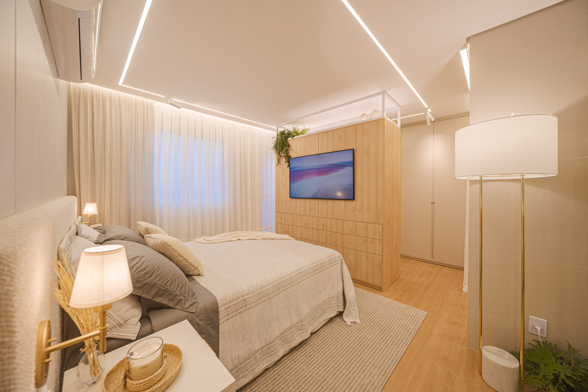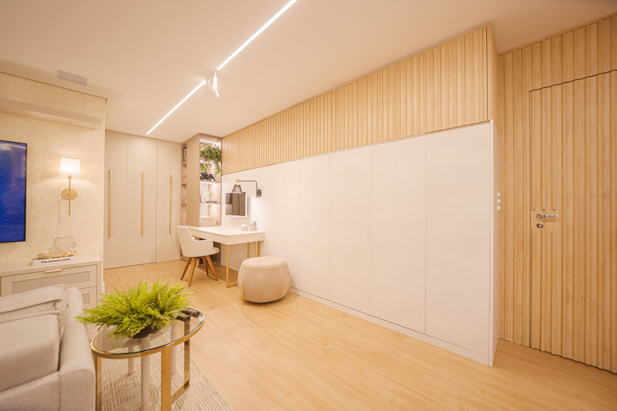 O Apto 182 foi projetado para refletir leveza, sofisticação e aconchego, trazendo uma atmosfera acolhedora e ao mesmo tempo contemporânea. A paleta clara, em tons neutros, cria uma sensação de amplitude e elegância, enquanto os detalhes em madeira aquecem os ambientes e reforçam o conforto visual.